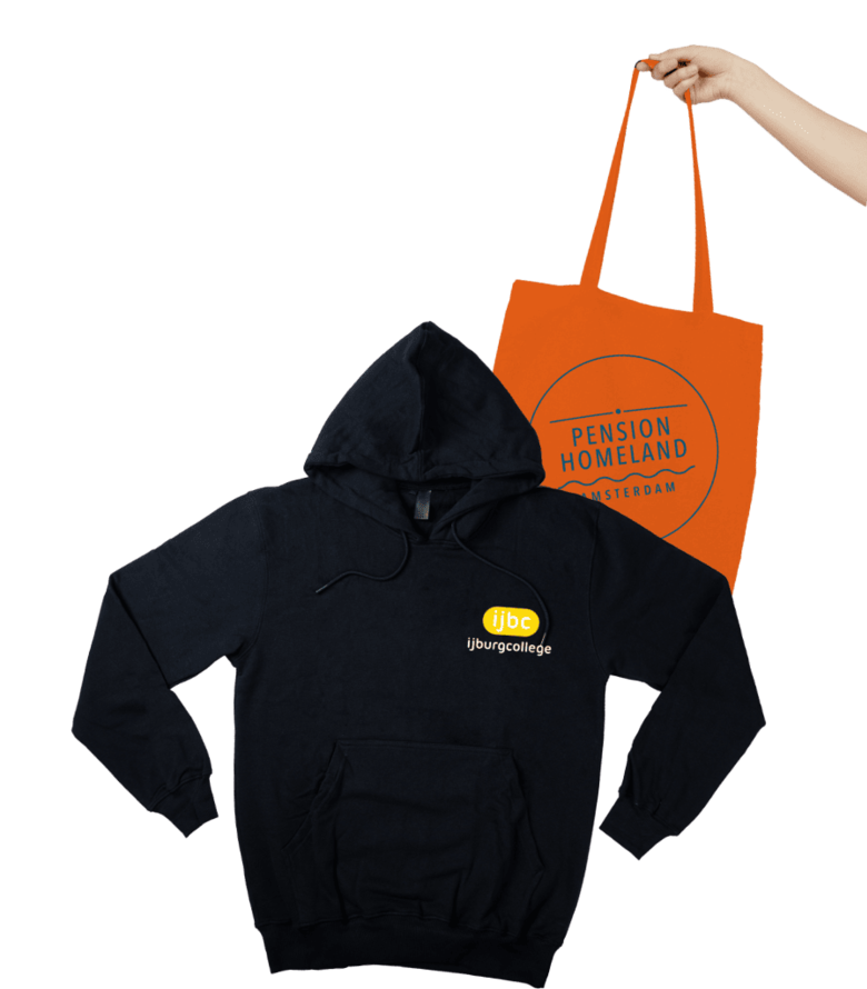 Uw eigen textielWij bedrukken alleen onze eigen kleding. Het afleveren van eigen kleding is niet mogelijk.